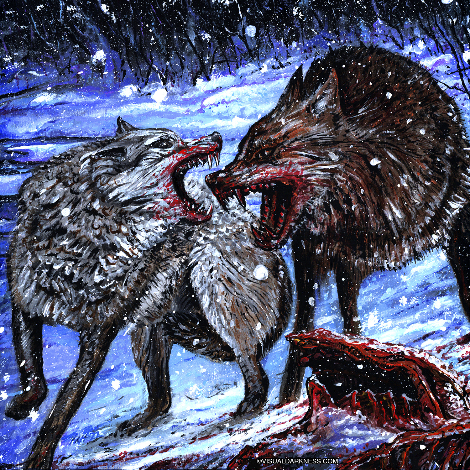 "SURVIVAL" WINTER WOLVES ORIGINAL ACRYLIC PAINTING